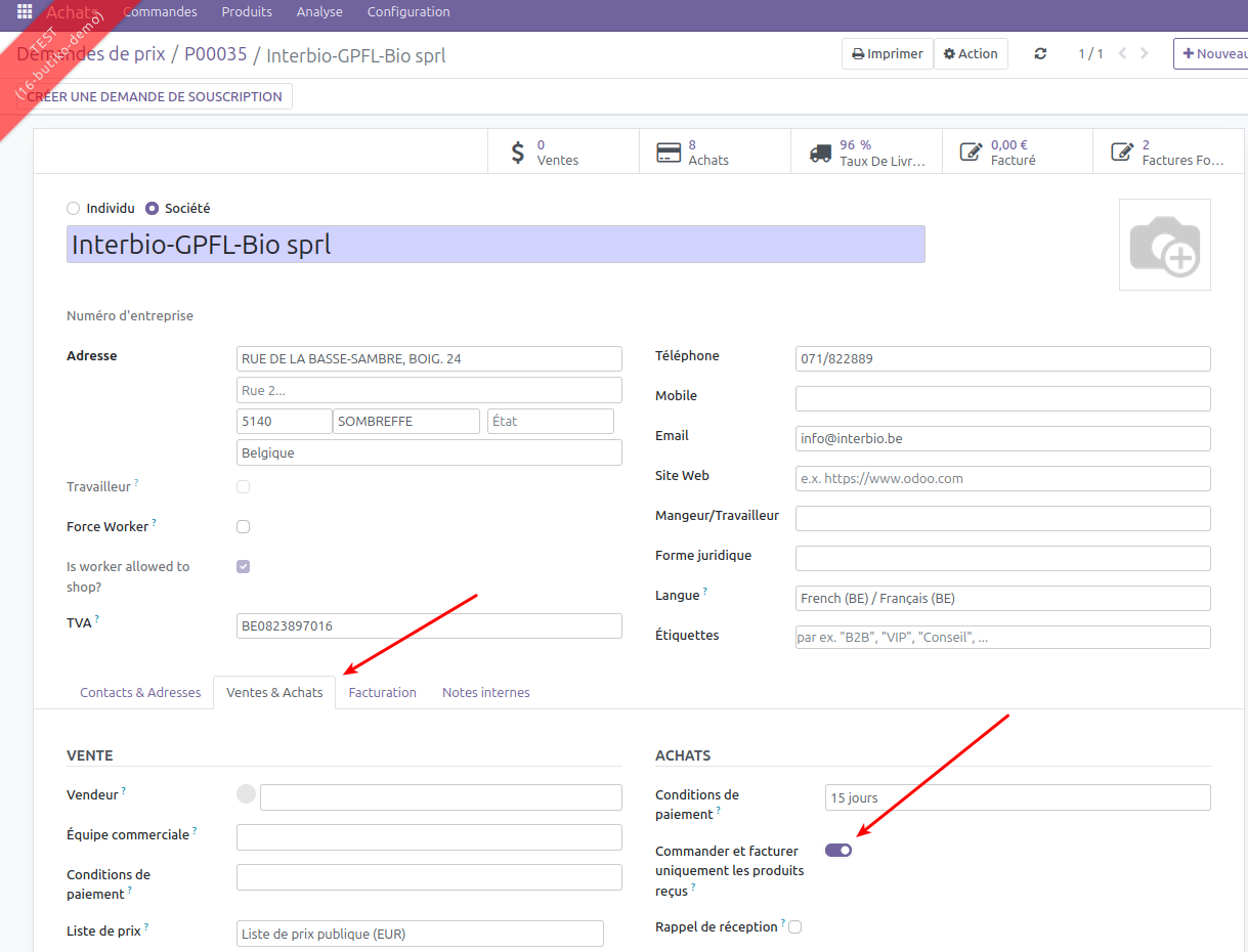 Cela peut également être coché individuellement sur les commandes fournisseurs. Si la case est cochée sur le fournisseur, la case sera cochée par défaut sur les commandes fournisseurs.