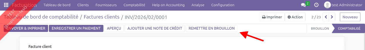Note : si deux factures Odoo ont la même référence, même si elles sont dans des journaux comptables différents, Odoo affichera un avertissement pour signaler le doublon.