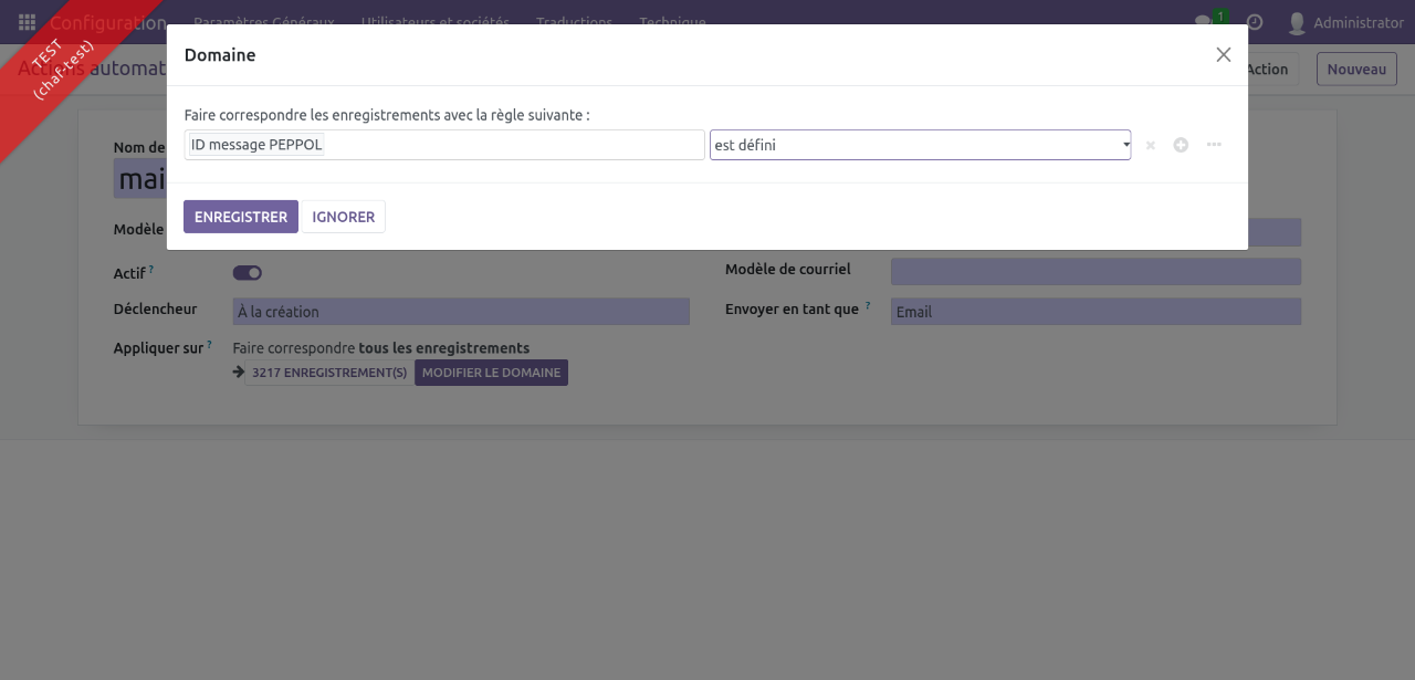 Il est possible d'ajouter une automatisation qui permette de recevoir un mail lors de la réception d'une facture Peppol.