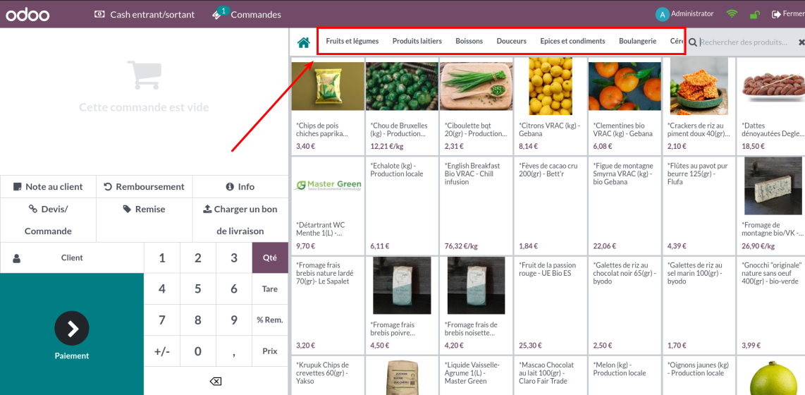 Les catégories Points de Ventes servent à la recherche par catégorie dans l'interface de caisse.