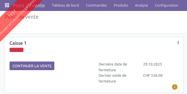 - une session ne peut être fermée que par l'utilisateur qui corresponds au caissier sélectionné dans le point de vente. (si je suis loggé en tant qu'employé A, mais que je choisis l'employé B comme caissier, je ne peux pas fermé la caisse)