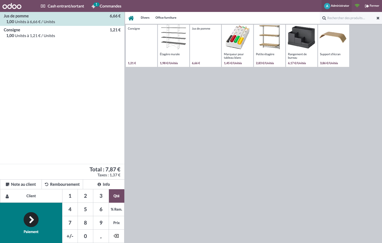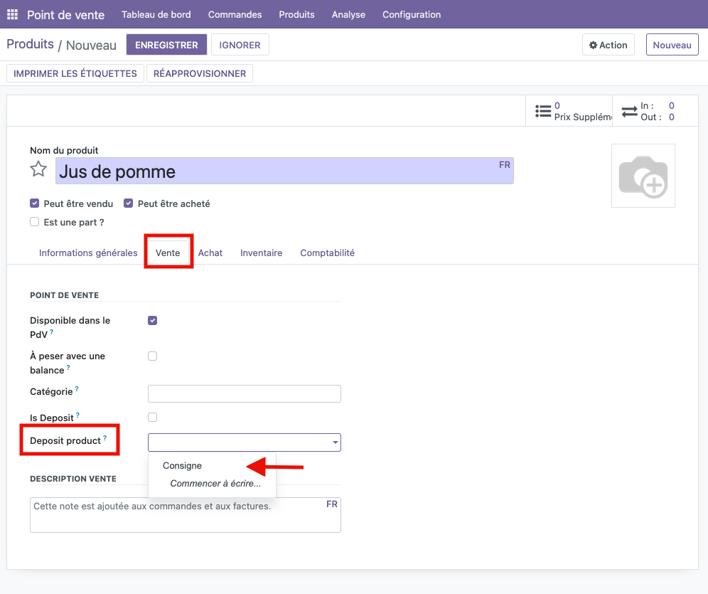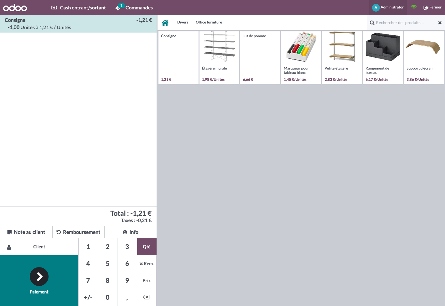 Lorsqu'on sélectionne le produit consigné dans le POS, la consigne est automatiquement ajoutée.