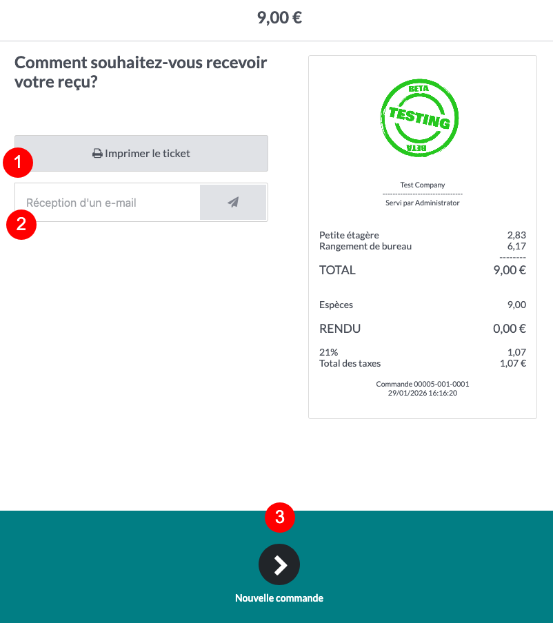 - Recevoir le ticket de caisse imprimé