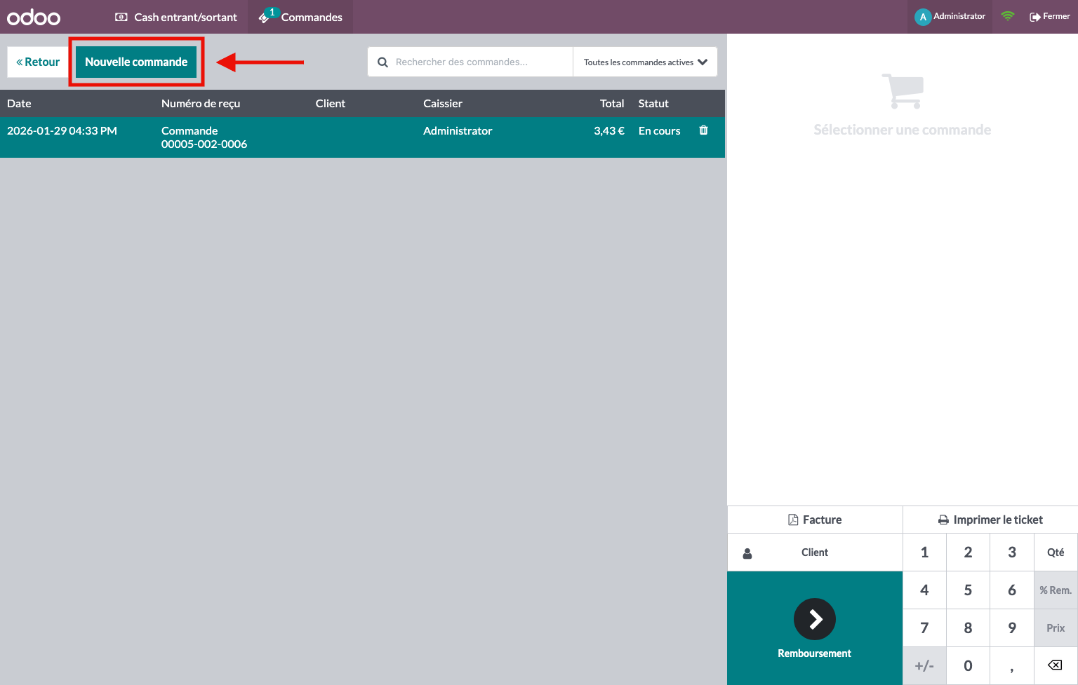 - Cliquer sur "Nouvelle commande". Vous verrez la commande mise en attente dans la liste plus bas.
