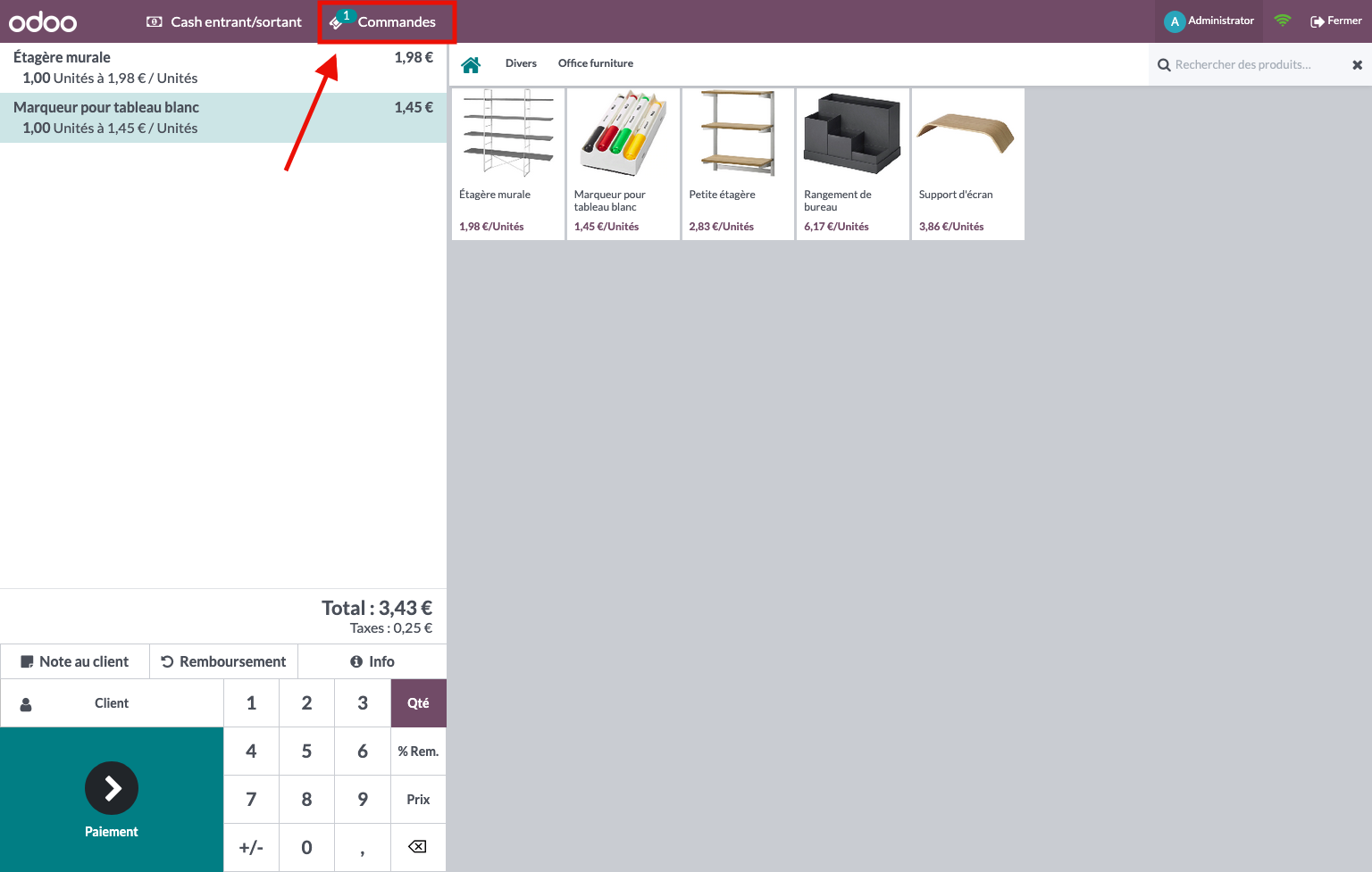 - Cliquez sur "Commandes"