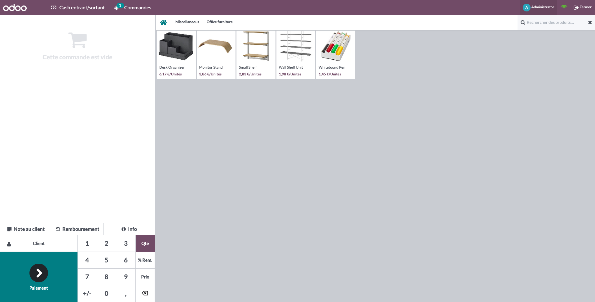 Votre point de vente est maintenant ouvert et vous êtes devant un écran divisé en deux. Il s'agit de l'interface de caisse.