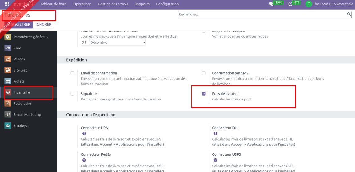 Pour utiliser cette fonctionalité pour la vente, il faut que la configuration "Frais de livraison" soit activée :
