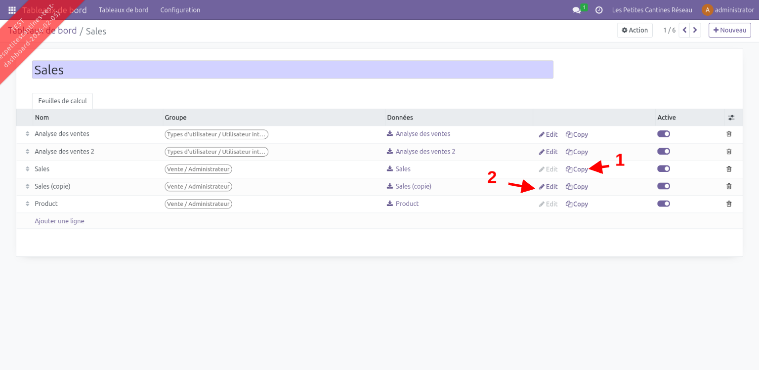 Ces tableaux de bords sont en fait liés à des spreadsheets existantes. Pour les modifier, il faut aller dans le menu Configuration>Tableaux de bord et copier le spreadsheet à éditer.